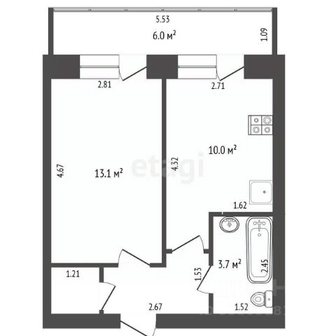 Площадь 56 м2.