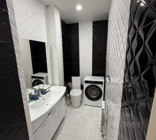 В квартире выполнен качественный ремонт в современном стиле, установлена кухня с техникой, есть холодильник и стиральная машина.