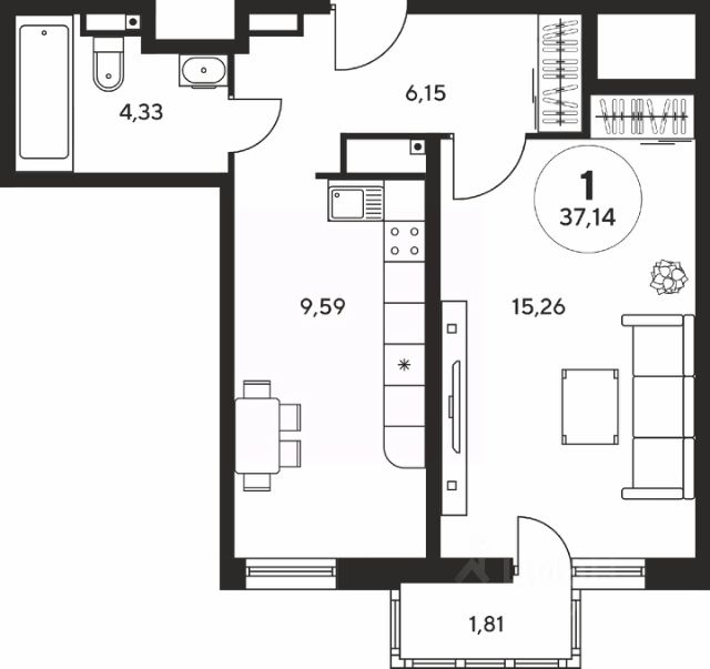В квартире выполнен дизайнерский ремонт, который создает стильное и уютное пространство. Просторная кухня оснащена всем необходимым для приготовления и приема пищи. Санузел совмещенный, оформлен в современном стиле. В квартире есть одна лоджия, где можно отдохнуть и насладиться свежим воздухом. Окна выходят во двор, поэтому здесь всегда тихо и спокойно.