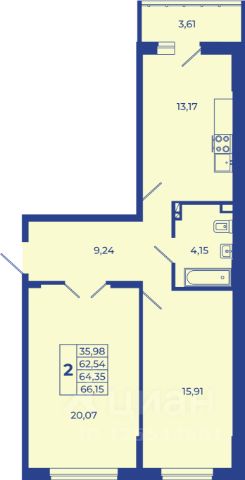 • ✅ Минимальная площадь: 35,2 м²
