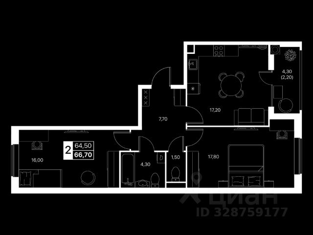 153 800 ₽/м²