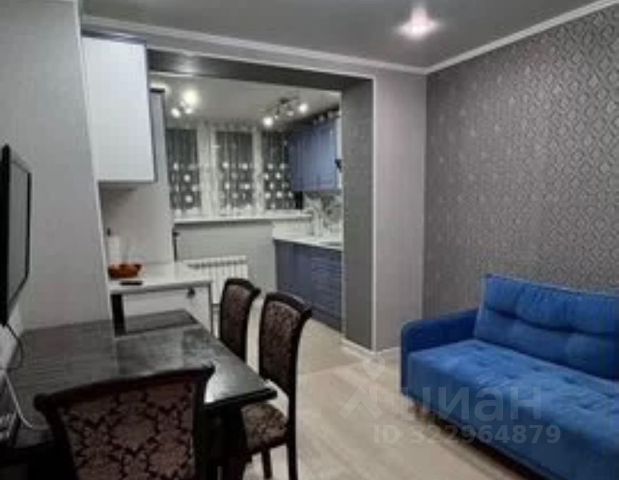 В основной комнате находится большой мягкий диван, дорогой журнальный столик ручной работы. Вся мебель выполнена на заказ, новый телевизор 55 дюймов. Самое то для просмотра фильмов и игр. Утепленная лоджия с двумя барными стульями для комфортного проведения утра или вечера за чашечкой кофе. Над лоджией дизайнерская люстра с разными вариантами свечения. Вся комната оборудована подсветкой RGB.