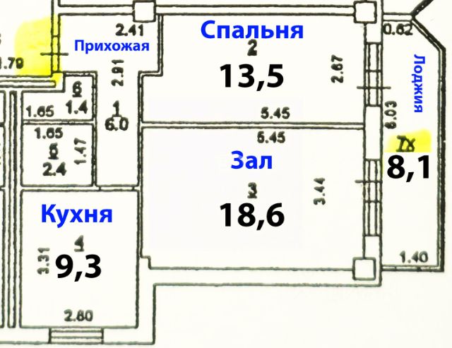 Зал 18,6 кв.м.