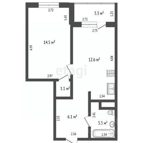 санузел совмещен, в санузле расположена ванна.