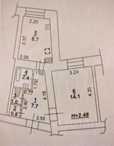 2-х комнатная квартира в кирпичном доме. Планировка очень востребованная: планировка "бабочка".
