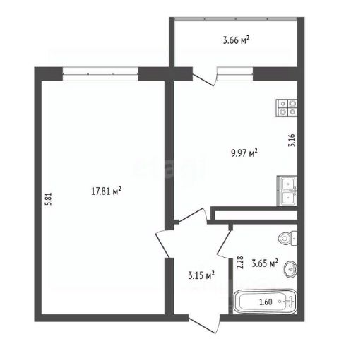 61 м² счастья не тесно, но и не так, чтобы терять друг друга из виду (шутка, вы всё равно будете кричать: "Где мои носки?!").