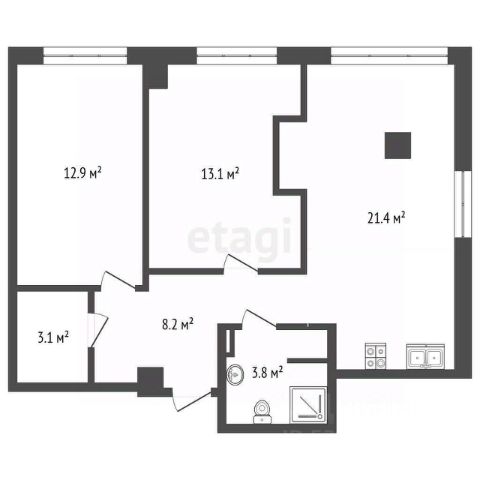 Отличный вариант для тех, кто хочет создать интерьер своей мечты с нуля, так как квартира без ремонта.