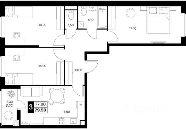 153 800 ₽/м²