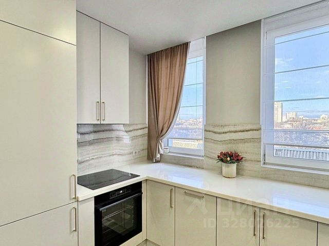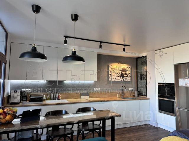 встроена современная техника: холодильник -полный no frost, духовой шкаф, посудомоечная машина с автооткрыванием дверцы, СВЧпечь, варочная плита, вытяжка;