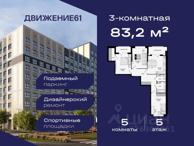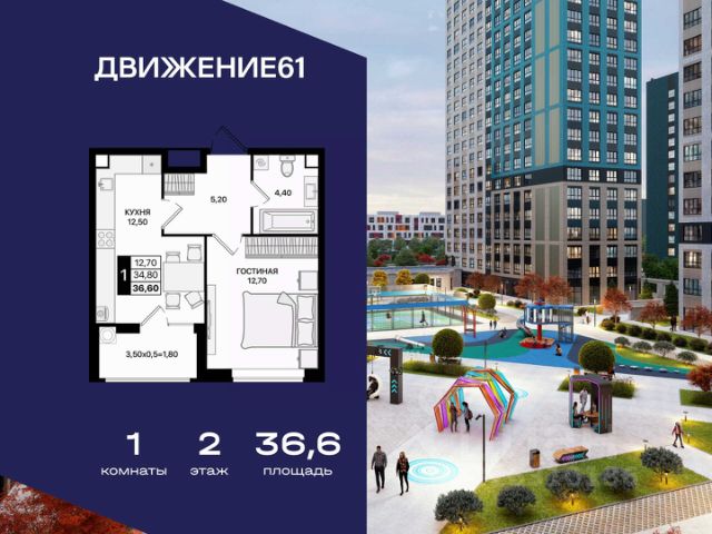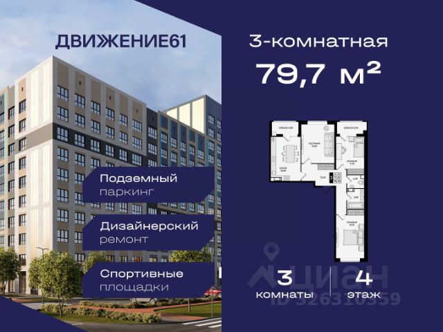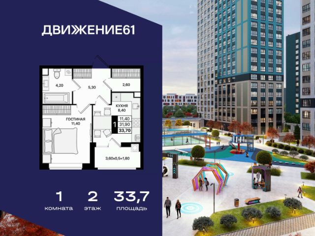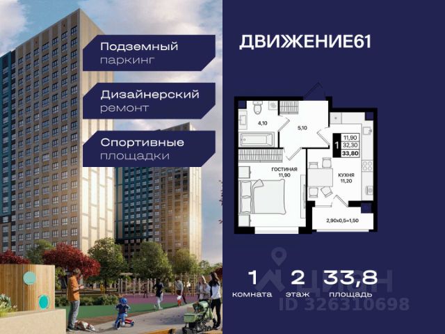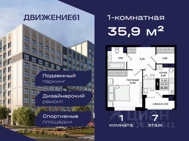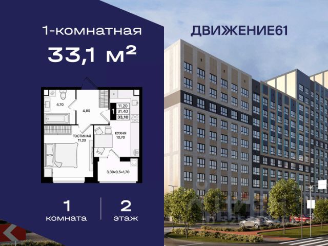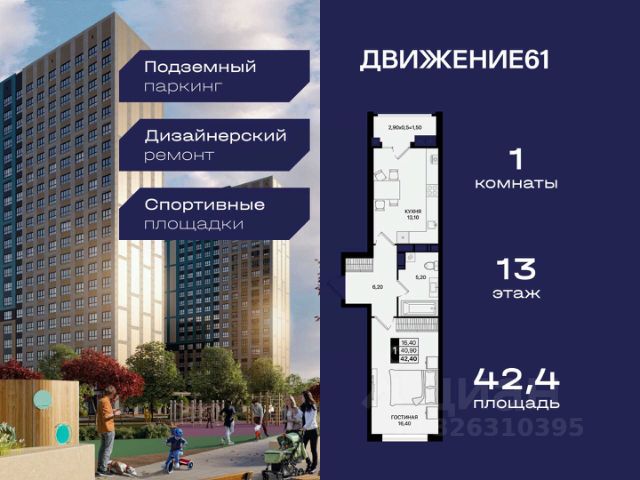 1-комнатная квартира в новом квартале "ЖК Движение 61" | Лучшая локация | Цены растут каждый год! Продается 1-комнатная квартира в новом современном доме от крупнейшего и самого надежного застройщика Юга России — "ЮгСтройИнвест" Почему это предложение выгодно именно сейчас? Цены на недвижимость повышаются ежегодно — успейте купить по выгодной цене! Возможность зафиксировать цену на 60 дней при предоплате 60 000₽; Материнский капитал используйте как первый взнос; Ставка от 6% для IT-специалистов + скидка 4 000 ₽/м²; В подарок — теплые полы; Рассрочка — перед сдачей; Программы для семей, айти-специалистов, молодожёнов, участников СВО, социальных работников — скидки от 150 000₽ до 8 000₽/кв.м. "ЖК Движение 61" один из лучших в Ростове! Новый квартал расположен рядом с проспектом Шолохова; В пешей доступности — гипермаркет Метро; В 3 минутах на авто — зеленая роща в ПКиО "Мета"; Удобная транспортная развязка — быстрое перемещение по всему городу; Новый собственный выезд на проспект — полностью асфальтирован и освещен. Преимущества квартиры и дома: Комфорт, пространство и качество; Теплый пол на кухне, в санузле и прихожей; Продуманные планировки, высокие потолки, много света; Панорамные виды на благоустроенный квартал; Доступен готовый дизайн-проект с мебелью и техникой. Двор без машин — абсолютный комфорт: Огромные дворы 6090 м; Просторные зоны отдыха; Детские и спортивные площадки; Уличные тренажёры; Круглосуточная охрана и видеонаблюдение. Почему ЮгСтройИнвест — лучший выбор? На рынке 22 года; Построено 383 дома; Создано 32 социальных объекта (9 школ и 23 детсада); Сдано более 6,8 млн м² недвижимости; Работа в 5 городах: Ставрополь, Краснодар, Ростов-на-Дону, Мариуполь, Кисловодск; Безупречная репутация по соблюдению сроков ; Позвоните сейчас цена растёт! Ваш идеальный вариант для личного проживания или выгодной инвестиции. Пока другие думают — самые хорошие предложения разбирают первыми! Продается квартира в Ростовской области, есть мебель .