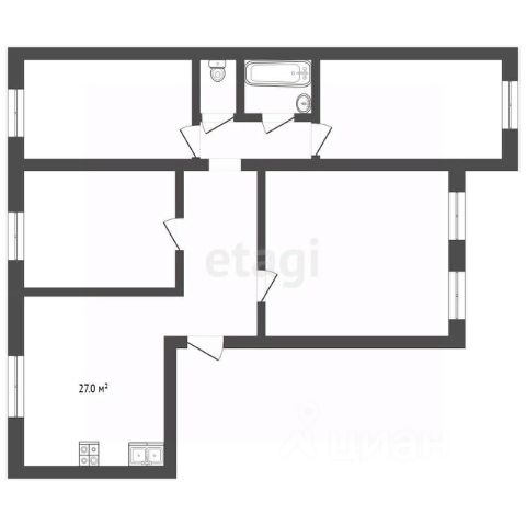 ПЛАНИРОВКА: коридор, раздельный санузел, 4 раздельные жилые комнаты, кухня и балкон.