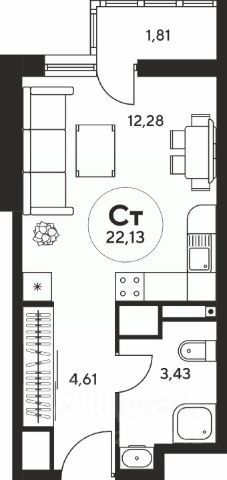 Студия в ЖК "Октябрь Парк" — это продуманное пространство, где все организовано для максимального удобства. При входе вы попадаете в прихожую, в которой легко разместить вместительную систему хранения. Просторная студийная зона объединяет уютное место для отдыха и функциональную кухню, создавая комфортную атмосферу для жизни и приема гостей. Дополняет планировку лоджия, которая может стать зоной хранения, уголком для релакса или мини-садом.
