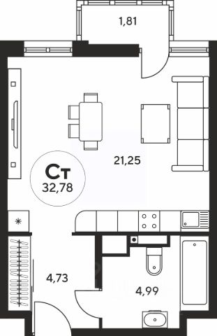 Площадь: 33,3м2