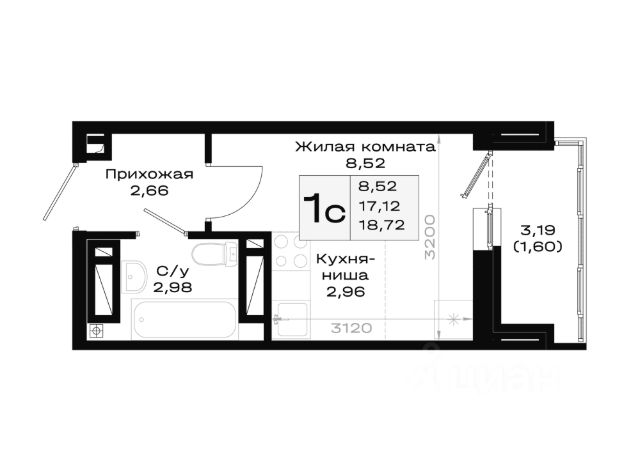 • ✅ Минимальная площадь: 18,7 м²