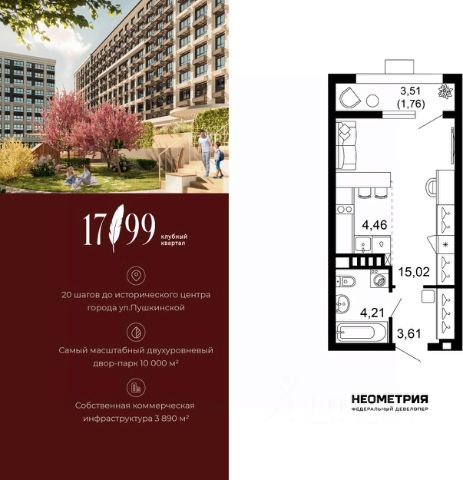 Продается квартира в клубном квартале "1799". Это истинный бизнес-класс в историческом центре Ростова. Особое сочетание уникальной локации и среды, где хочется создавать ту жизнь, которая подходит вам. Где каждое мгновение становится частью семейной коллекции лучших моментов. Квартал вдохновлен идеями великих и создан для великих. Образ хранителя ценностей — в каждой детали: имя и философия замедления, аристократичные фасады, лобби и холлы, семейные резиденции-истории и актуальное содержание. На приватной территории в 2,5 гектара четыре дома всего 10-этажей образуют масштабный двухуровневый двор-парк 10 000 м2 со smart-зонированием по возрастам и интересам. Среда квартала продумана для всей семьи: учебы и работы, спорта и отдыха, совместного досуга и теплых бесед. Гамак мечтателя, тайные места и маршруты, вертикальный сад пряных трав, амфитеатр и даже новогодняя ель. Резидентам доступны редкие для центра привилегии — природная тишина и свобода быть собой. Безукоризненный сервис и собственная коммерческая инфраструктура 3 890 м2, где все необходимое под рукой, позволяют жить в центре с бескомпромиссным комфортом. #ztIzEu