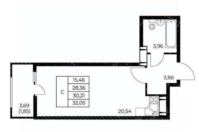 • ✅ Минимальная площадь: 22,2 м²