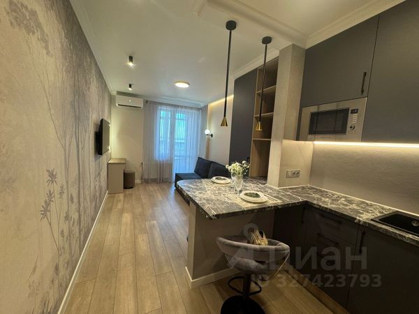 Продается квартира - студия. Ларина 45 с6 ЖК "Сердце Ростова -2". Дом новый 2024г. Квартира находится на комфортном 8-м этаже с хорошим видом на город. Ремонт квартиры выполнен по дизайн -проекту с использованием качественных материалов (гипсокартон на потолке, покрытие пола износостойкий кварц винил без стыков по углам. В санузле теплый пол и теплая стена, сантехнический шкаф с входными фильтрами глубокой очистки. Выделена зона гардеробной. В квартире имеется большое количество мест хранения, а так же предусмотрено рабочее место. Фасады кухни изготовлены из антивандального пластика. В зоне прихожей на части стен керамогранит, что делает ее стильной и максимально не убиваемой в плане эксплуатации. Лоджии украшает керамическое панно, а так же имеется теплый пол. Приобретая данную квартиру Вы получаете высокий уровень ремонта. Отличное месторасположение дома. Рядом ТРЦ "Горизонт", Н2О и т.д. Продается квартира-студия в ипотеку в микрорайоне Нариманова в городе Ростов-на-Дону.