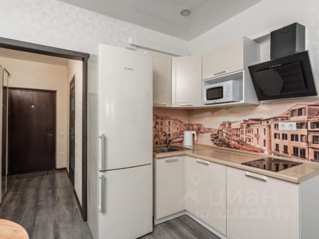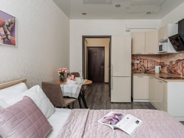 В студии сделан современный ремонт, теплые полы, инсталляция Rocca, кондиционер, большой шкаф для хранения вещей, микроволновка, кровать с подъемным механизмом, панорамное остекление с прекрасным видом во двор , утепленный балкон с теплым полом.