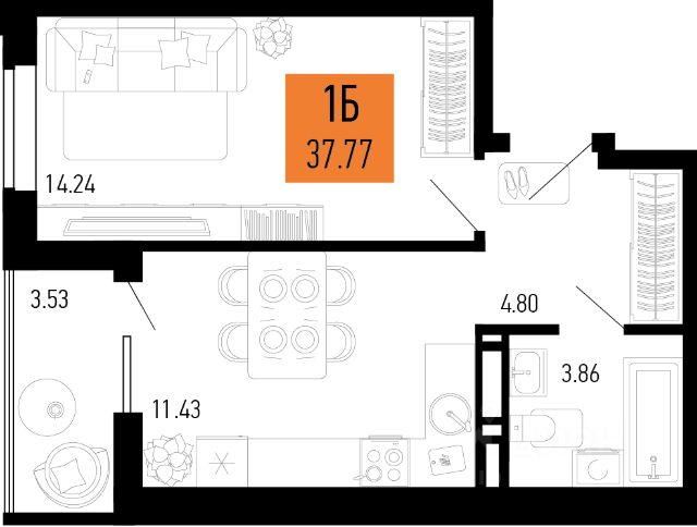 • ✅ Минимальная площадь: 22,4 м²