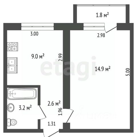 - жилая комната - 14,5 кв.м;