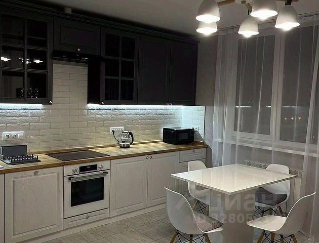 Кухня сделана на заказ, все шкафы с доводчиками, качественная бытовая техника ( варочная панель, духовой шкаф, вытяжка, холодильник). Качественная обеденная группа( стол раскладывается). Установлена сплит-система инверторная, раскладной диван. На лоджии ламинат, н, вместительный шкаф для хранения. С лоджии панорамный вид на городской пейзаж, центр города и стадион. В прихожей вместительный шкаф-купе, так же установлена обувница. Ванная комната совмещенная с с/у, выложена керамогранитом, установлена стиральная машина, шкаф для бытовых принадлежностей.