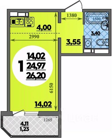 Продаётся студия в сданном доме (Костенко, 12 (Литер 1)), срок сдачи: III-кв. 2025, общей площадью 27.37 кв.м., на 17 этаже. ГOTOBЫЙ PЕМОНТ ПОД КЛЮЧ