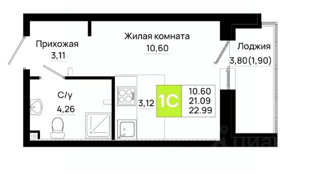 Продаётся студия в сданном доме (Костенко, 12 (Литер 1)), срок сдачи: III-кв. 2025, общей площадью 26.12 кв.м., на 16 этаже. ГOTOBЫЙ PЕМОНТ ПОД КЛЮЧ