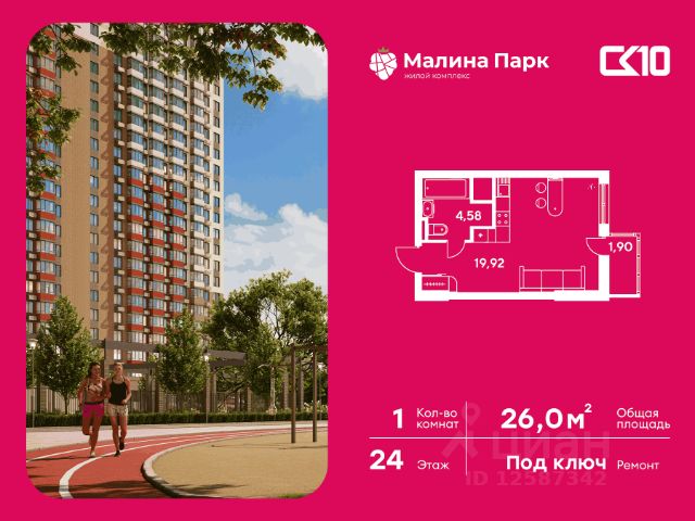 Продаётся студия в строящемся доме (Поз. 1-4), срок сдачи: IV-кв. 2025, общей площадью 25.95 кв.м., на 16 этаже. Новый жилой комплекс "Малина парк" от группы компаний "СК10" расположен по адресу: г. Ростов-на-Дону, по ул. Малиновского.