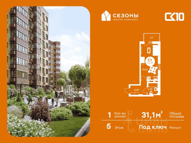 Продаётся студия в строящемся доме (Дом 4), срок сдачи: IV-кв. 2026, общей площадью 31.35 кв.м., на 9 этаже. ЖК Сезоны 1 это уникальный проект, созданный вдалеке от шума и суеты мегаполиса. Радоваться каждому дню в любом возрасте здесь будет проще - внутреннее состояние удовольствия поддерживает окружающая обстановка. Комплекс разработан с уникальным планом озеленения, главной идеей которого является зеленый двор круглый год. Большая игровая зона позволит родителям с комфортом проводить время со своими детьми. Закрытая территория обеспечивает безопасность и защиту от нежелательных посетителей, а подземный паркинг сохранит ваш автомобиль в отличном состоянии.
