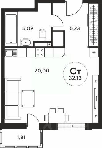 Продаётся студия в сданном доме (Костенко, 12 (Литер 1)), срок сдачи: III-кв. 2025, общей площадью 27.37 кв.м., на 17 этаже. ГOTOBЫЙ PЕМОНТ ПОД КЛЮЧ
