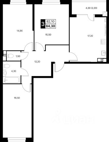 — Продуманная 3-комнатная планировка: две отдельные спальни + большая гостиная;