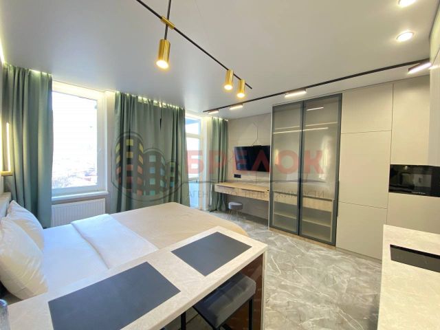 Кухня сделана на заказ, все шкафы с доводчиками, качественная бытовая техника ( варочная панель, духовой шкаф, вытяжка, холодильник). Качественная обеденная группа( стол раскладывается). Установлена сплит-система инверторная, раскладной диван. На лоджии ламинат, н, вместительный шкаф для хранения. С лоджии панорамный вид на городской пейзаж, центр города и стадион. В прихожей вместительный шкаф-купе, так же установлена обувница. Ванная комната совмещенная с с/у, выложена керамогранитом, установлена стиральная машина, шкаф для бытовых принадлежностей.