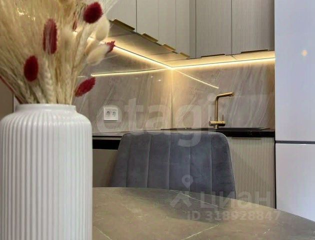 В квартире выполнен качественный ремонт в современном стиле, установлена кухня с техникой, есть холодильник и стиральная машина.
