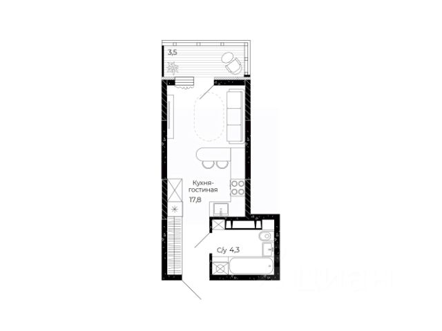 Площадь: 35,5 м2, этаж: 9/9.