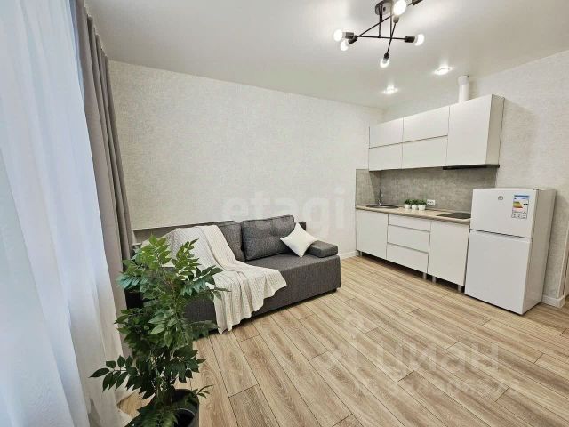 На Сельмаше в ЖК "Молодёжный" продаётся просторная студия - 44,6 квадратных метра с ремонтом, мебелью и бытовой техникой.