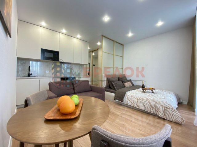 Продается видовая, стильная студия, 30 кв.м, 25/25, качественный дизайнерский ремонт, зоны теплого пола, мебель, бытовая техника, сплит система, балкон остеклен и утеплен. Окна в квартире выходят на Восток, поэтому даже зимой квартира теплая и светлая.