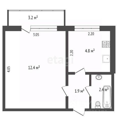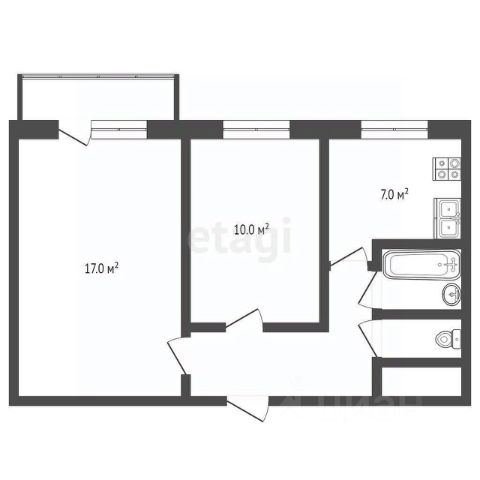 Удобная планировка общей площадью 37,4кв.м.