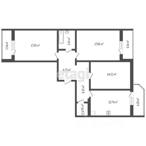 - Совмещённый санузел — 4 м²