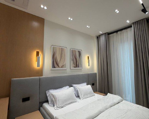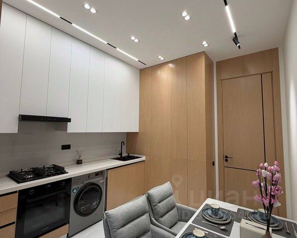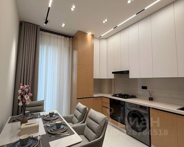 Квартира в отличном состоянии, сделан качественный ремонт с использованием дорогих материалов: итальянская плитка с фресками; обои бренда Trussardy; ванная Roca; тропический душ; смеситель и унитаз с инсталляцией Grohe. Шпонированные межкомнатные двери и шкаф в прихожей. Выполнена подсветка карнизов, кухни, тумбы под телевизор. На кухне установлен смеситель с встроенным фильтром для очистки воды. Для крепкого сна имеется большая и комфортная двухметровая кровать с матрасом АСКОНА.