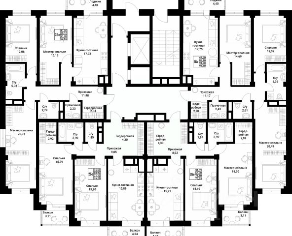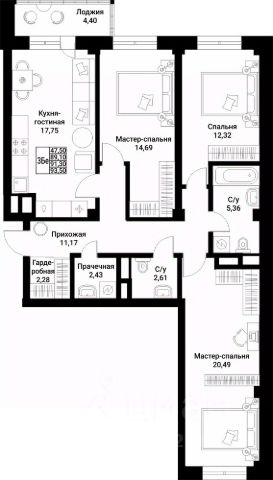 Удобная и функциональная планировка общей площадью 47,9 м2. (с учетом хол. пом.);