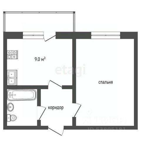 Удобная планировка общей площадью 37,4кв.м.