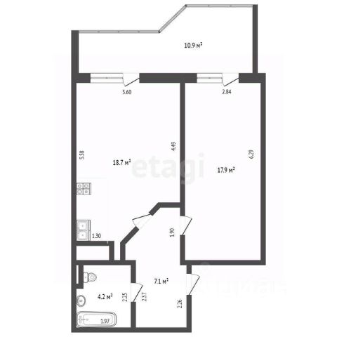 Общая площадь с лоджией: 33,3 кв.м. (план на фото в объявлении);