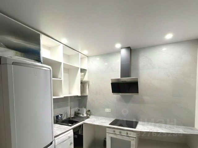 Кухня в потолок (без фасада), встроенный духовой шкаф, варочная панель Hair, вытяжка, посудомоечная машина Bosh, фильтр для воды.