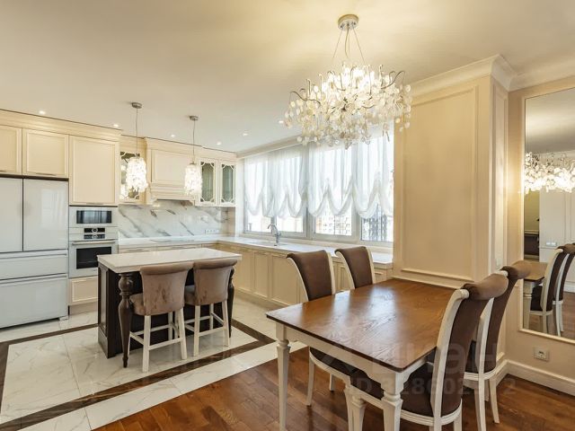 Эта просторная квартира с продуманной планировкой включает в себя огромную кухню-гостиную площадью 40 кв.м., три уютные спальни, три современных санузла и 1 лапомойка (или технический санузел), кладовую рядом с кухней, большую гардеробную и кабинет, который станет отличным местом для работы или учебы. Все комнаты снабжены системами хранения, а так же в 2 спальных установлены письменные столы