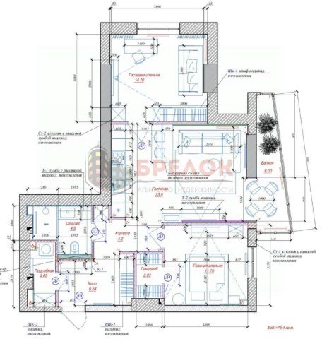 По проекту предуссмотренно 3 спальни, кабинет, кухня-гостинная (31,2 кв.м), 2 санузла, гардеробная, большой холл. Конфигурацию квартиры и проект можно изменить по вашему усмотрению. Квартира не угловая, солнечная и теплая. На лесничной пощадке 3 квартиры. Из окон открывается вид на город и реку Дон.
