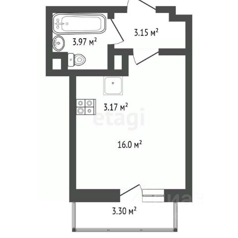 Площадь без лоджии, по документам: 30.8 кв.м;