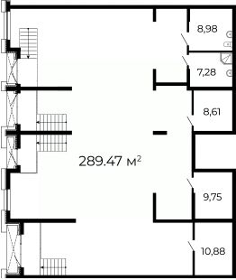 Помещение свободного назначения на -1 этаже, общая площадь 289.47 кв.м.