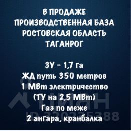 В продаже эксклюзивное предложение от агентства "Альфа Недвижимость", производственная площадка в городе Таганрог.