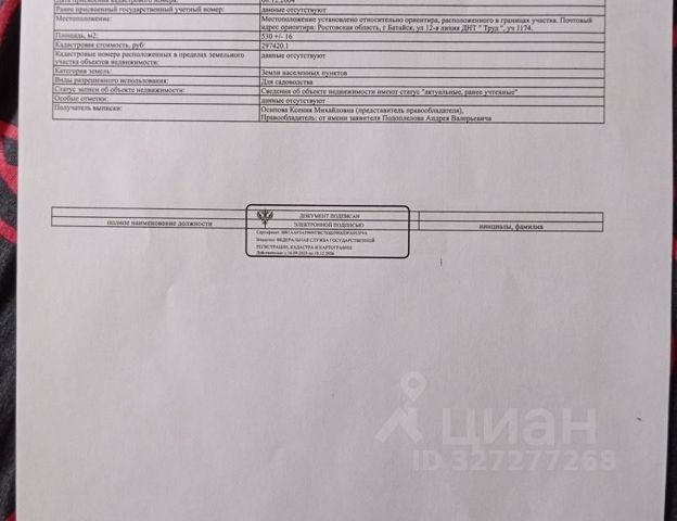 СОБСТВЕННИК! Продаю свой участок в районе Соленого озера. Участок расположен в СНТ Гидромеханизатор. Вокруг постоянно проживают люди. Прекрасное место для жизни и отдыха. На участке расположен небольшой дом и баня из сруба. Места предостаточно! Площадь участка 12 соток. Участок находится на возвышенности. Ровный, чистый, красивый, правильной формы. Электричество, газ и вода центральные. На всё установлены счётчики. Преимущества территории: До Ростова-на-Дону 10 минут езды. Закрытая территория, круглосуточная охрана, асфальтированные дороги. Рядом находится аквапарк Южный, магазин Пятерочка, Вкусно и точка, загородный клуб Солнечный. Земля в собственности, подходит ипотека. Один собственник. Документы готовы к продаже. Готовы к торгу с реальным покупателем! Купить участок 12 соток в Батайске.