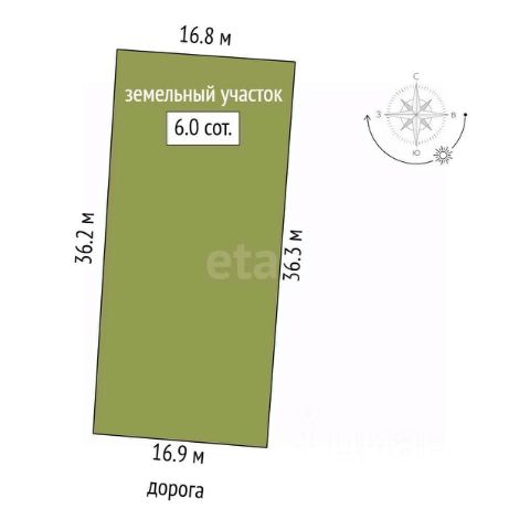 Земельный участок площадью 6 соток расположен в СНТ "Зодчий" Ворошиловского района Ростова-на-Дону. Участок имеет правильную прямоугольную форму 16,8 на 36 метров и ровный рельеф, что упрощает планировку и строительство. Все границы в феврале 2026 года вынесены в натуру с высокой точностью, ограждение установлено строго по меже, а данные внесены в Росреестр, что гарантирует юридическую чистоту и отсутствие споров. Участок обеспечен централизованными коммуникациями: по границе проходят магистрали электричества, газа и водопровода. Широкие подъездные дороги обеспечивают удобный доступ. Объекту присвоен и зарегистрирован постоянный почтовый адрес: г. Ростов-на-Дону, ул. 4-я Мозаичная, з/у 19. Право собственности не обременено, владелец один. Инфраструктура района хорошо развита: в шаговой доступности находятся остановка общественного транспорта, Щепкинский лес и озеро. На автомобиле за 10 минут можно добраться до торговых центров "Ашан" и "Леруа Мерлен". Перспективу района подтверждает планируемое строительство автомобильной дороги регионального значения в 300 метрах к югу от участка, что потенциально повысит транспортную доступность и инвестиционную привлекательность локации. Участок полностью готов к началу строительства жилого дома для постоянного проживания. Дополнительно оплачивается комиссия с покупателя. Возможно строительство дома под семейную ипотеку. Код пользователя: 199135 Номер в базе: 11889542